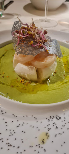 Read moreIn una settimana di vacanza in quelle zone con amici ci siamo tornati 3 volte per cenare. Già solo questo può far capire qualcosa.. Location spettacolare. Sia dentro che fuori. La prima sera che ci siamo stati eravamo ad un tavolo vista piscina. Tutta la zona ben illuminata che rende suggestiva la posizione. Ho richiesto poi nelle due sere in cui sono tornato di poter avere lo stesso tavolo o uno lì vicino. Accontentato! Musica di sottofondo soft molto piacevole e ad un volume tale da non disturbare per niente. Molto gradita. Veniamo alla parte più interessante. Menù molto interessante con piatti a base di pesce o di carne scritto su una grossa lavagna su un cavalletto che i camerieri portano al tavolo di volta in volta. Essendoci tornati per tre volte abbiamo avuto il piacere di poter assaggiare piatti diversi. Uno più buono dell'altro!! Non saprei consigliarne uno in particolare. Ogni piatto scelto si è dimostrato più che soddisfacente. Alcuni con abbinamenti che ci sono parsi inizialmente un po' azzardati ma che invece ci hanno piacevolmente conquistati. Oltre al gusto, porzioni perfette ed impiattamento da artista. Spiace quasi metterci la forchetta in mezzo e rovinare l'opera d'arte. Per quanto riguarda il servizio, i due ragazzi che ci hanno servito sono molto preparati e, cosa degna di nota, fanno il loro lavoro con passione e con la loro simpatia contribuiscono a rendere la serata piacevole. Mi spiace non ricordare i loro nomi per poterli menzionare. Altra cosa degna di nota... nell'ultima sera in cui ci siamo stati, c'è stato qualche piccolo ritardo nel servizio a causa di un gruppo numeroso un po' confusionario. Nulla di che ma il proprietario è venuto al tavolo scusandosi per il servizio e ci ha offerto caffè e amari. Beh....... Chapeau!! Mica da tutti!!! Mi spiace solo di non abitare lì vicino altrimenti ci sarei tornato spesso. Super...