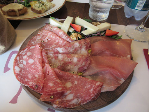 We felt ordered a plate of salumi and cheese and a plate of crostini. Two glasses of White wine with. Meat was of good quality, the cheese on the other hand was just average. The Crostini were very good. Nice, fresh, crispy. And all were made by order (you can see inside the kitchen). The one with the liver and the one with the olive topping were our favourites.