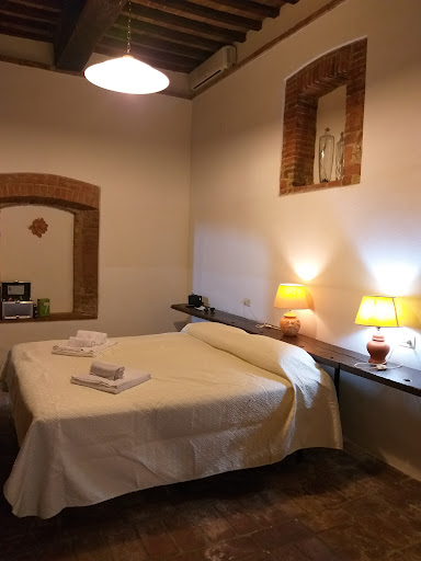 Read moreAbbiamo soggiornato una notte in questo agriturismo in occasione di una gara di endurance presso il vicino ippodromo.||Si accede alla struttura tramite una strada sterrata di circa 200mt, quindi se avete auto sportive o molto basse, occhio!||La stanza che ci è stata assegnata è denominata " Girasole" e la sconsiglio vivamente. Innanzitutto manca di aria condizionata...non oso pensare a come saremmo state se solo avessimo prenotato un paio di settimane prima quando c'erano 40 gradi all'ombra!||Non c'è televisione, in bagno solo sapone per le mani ma nessun set per la doccia....||Ah già ...la doccia.....orrore!! Piazzata in un angolino del bagno, senza piatto ma con la desueta griglietta di scolo sul pavimento e la fantomatica tendina di plastica che ti si appiccica immancabilmente addosso. ||Per concludere, materasso sottiletta e rete che cigolava in modo sinistro.||Insomma...il posto non vale sicuramente i 100 euro spesi (erano convenzionati con il comitato gara quindi abbiamo pagato meno di quanto avrebbero chiesto, ma in camera c'era il cartellino prezzi e diceva addirittura 220€ ...follia pura!)||Il tutto si riscatta un po grazie alla cortesia della titolare che ci ha concesso un check out posticipato venendo incontro alle nostre richieste e la Signora Caterina, addetta alle camere e alle colazioni, che è stata deliziosa e sempre sorridente. A lei un...