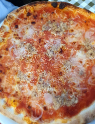 La pizza è semplicemente eccezionale. La crosta è cotta alla perfezione, con il giusto equilibrio di croccantezza, e gli ingredienti sono freschi e saporiti. La combinazione di ingredienti di qualità, come verdure fresche e salsiccia gustosa, crea un’armonia di sapori che è sia appagante che deliziosa. Abbinata a una bevanda fresca, è un pasto che non dimenticherai facilmente.