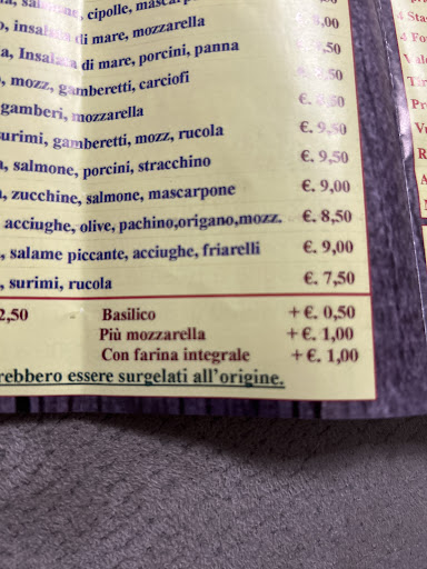Read moreHo assaggiato una margherita diciamo che non è male ma nemmeno indimenticabile come sapore ho preso comunque un voltantino e portato a casa e mi è cascato l occhio sul sovrapprezzo dell aggiunta degli ingredienti…… tra le altre leggi basilico più 50 centesimi…. Ma come si fa a far pagare l aggiunta del basilico che tra l atro ed’ un ingrediente basico per la pizza… non ci tornerò più ne ordinerò’ mai una questione...