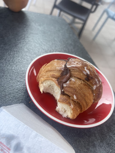 Read moreEntriamo per una colazione veloce circa alle 8.00 Prendiamo cornetto al cioccolato e tramezzino con due cappucci. Prima impressione le api nella vetrina dei dolci..magari evitabile chiudendo la vetrina.. Tramezzino e cappucci tutto ok tranne che il pezzo dolce e il pezzo salato che sono stati serviti nello stesso piatto praticamente attaccati senza neppure un tovagliolo nel mezzo..tendenzialmente andrebbero divisi… Ci sediamo e al primo morso del cornetto si nota come in maniera ovvia sia del giorno prima. Cioccolata all’interno secca pasta sfoglia imbarazzante secca e dura. Ora mi chiedo il 31 di agosto in una località turistica come si possa mettere in vendita un prodotto del genere. Ho evitato discussioni inutili visto che i personaggi al banco mi sembravano già indisposti di loro, ma davvero sarebbe stato da farvi una parte davanti alla clientela. Il cornetto di ieri lo si butta, prendere in giro il turista che ti da mangiare non si prende, e sé quella invece fosse la massima qualità offerta siamo davvero ai minimi. Ci tengo a sottolineare che eravamo venuti anche qualche sera prima per una bevuta e una crepes e con lo staff di lunga più giovane e alla mano ci siamo trovati benissimo sia a livello interpersonale che a livello di qualità di preparazioni. Consiglio spassionato ponete cura sul cliente perché come detto senza loro ( e sicuramente noi non più) non si lavora e...