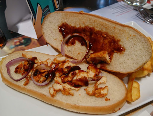 Read moreLocale ben arredato curato nei dettagli e personale ai tavoli sorridenti e gentili ma le cose belle finiscono qui...cio che ci hanno servito non si può chiamare cibo..abbiamo ordinato 2 costine di maiale prive di sapore cotte malissimo ed accompagnate da delle patate che dovevano essere al cartoccio ed invece arrivano 2 Patate bollite freddissime ed insapore sensa alcun condimento...arrivano poi 2 panini,il primo vegetariano con un fungo dalla consistenza gelatinoso tanto era cotto male acquoso sensa sale dal colore grigio scuro avvolto tra tre strati di formaggio salatissimo freddo e per di più con la crosta (tengo a precisare che la crosta dei formaggi spesso viene classificata come non edibile)l'altro panino un hamburger ridicolo ben lontano dall'Image con la quale viene pubblicizzato nel menù la carne bruciata ma fredda il pane gommoso e crudo ed anche qui il formaggio con la crosta. ..arriva poi i famosi jalapeno frutti ma anche qui sorpresina perché colui che ha cucinato(non possiamo chiamarlo cuoco)ha sbagliato prodotto e quando abbiamo assaggiato I peperoncini ci siamo ritrovati ha dover inghiottire una salsa arancione dolce speziata senza possibilità di riconoscere cosa fosse racchiusa in una panatura untissimo e dal odore poco invitante. ..Riepilogo : 2 panini 2 costine 1 jalapeno 3 birre piccole ed una media 81 € allego...