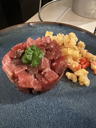 Read moreNon sono rimasta troppo contenta per diverse ragioni: dentro alla veranda si moriva dal caldo nonostante fosse un posto esterno al locale, ma privo di climatizzazione.... Il colore della mia tartare era un po' scuro...e francamente i prezzi delle portate non sono eccessivi, ma neanche così economici!! Prima di decidere se entrare o meno, ho chiesto al proprietario se accettavano i cani;ovviamente avendomi detto di sì, ci siamo accomodati anche se la sua domanda riguardo se il mio animale fosse buono o meno, mi ha lasciata subito un po' interdetta.... Ovviamente un cane è un cane e quando ha abbaiato ad un suo simile che stava passando di là, lo stesso titolare che mi aveva accolto nel suo locale, con aria scocciata, mi ha fatto subito notare che, avendolo definito buono, forse avevo sbagliato, poiché da quel comportamento aveva capito che il mio peloso, era un po' inquieto e aveva qualcosa che non andava!!! Come se fosse anomalo che un cane abbagli... Dopo questa affermazione, ha iniziato una filippica sul come educare un cane... al che, mi sono sentita subito a disagio, me ne sarei voluta andare immediatamente, ma avevamo già ordinato. In ultimo, ho notato che ad alcuni signori appena seduti al tavolo, lo stesso titolare del locale gli aveva elencato i piatti fuori menu, con noi non li aveva neanche mensionati! Un trattamento differente... forse xchè avevamo il cane??? Bha, sono sicura che confrontando prezzo, qualità e professionalità, sarà difficile anzi sicuro che non metteremo mai più piede in...