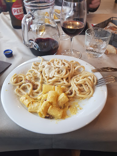 Primi di una delusione tremenda: -Carbonara sciapa, guanciale quasi non pervenuto, poco o nulla saporita, uovo troppo cotto e rigatoni scotti. Gricia anche peggio, formaggio poco saporito, guanciale praticamente lesso e per nulla rosolato, troccolo cotto al punto giusto ma che nell'insieme consegnavano un piatto "sciacquato" e per nulla paragonabile ad un primo da ristorante.