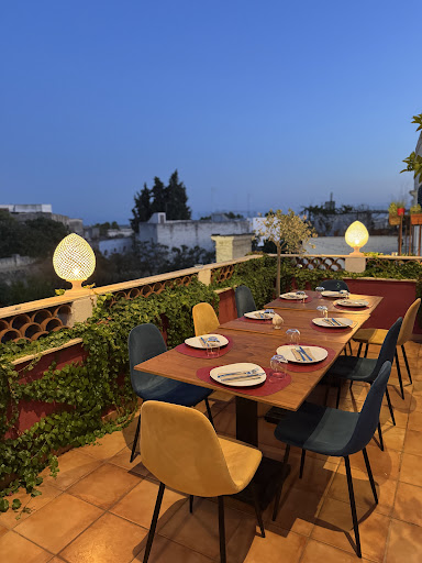 Consiglio vivamente di prenotare, per tempo, un posto in terrazza perchè la location è stupenda: sovrasta tutta via delle ceramiche, e di sera è spettacolare. Il ristorante è elegante ma al tempo stesso con un'atmosfera familiare. Ho cenato con la mia famiglia, e anche il bambino più piccolo ha mangiato molto bene con il suo menù. Noi grandi invece abbiamo degustato un antipasto molto ricco, tipico grottagliese, classico ma al tempo stesso anche "rivisitato" e ben impiattato. Come piatti principali abbiamo scelto la carne alla griglia, cotta perfettamente! Anche il piatto vegetariano / vegano è stato all'altezza dell'esperienza. All'uscita abbiamo notato altri clienti che avevano ordinato la pizza, alla vista ci è sembrata ottima, torneremo presto per assaggiarla!! Personale educato, gentile e attento a soddisfare tutte le aspettative del cliente. Ottimo rapporto qualità / prezzo. Quindi che dire!? Consigliato vivamente sia per gente locale ma soprattutto turisti che vengono a visitare il quartiere...