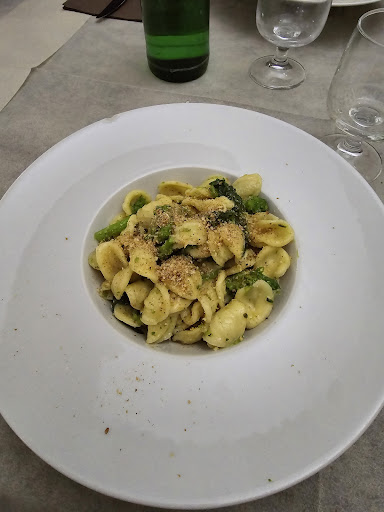 Abbiamo optato per un antipasto misto che aveva portate sia di terra che di mare. Antipasto sufficiente, con alcune pietanze di pesce che sembravano essere confezionate. Presentazione nelle conchiglie non al passo con i tempi e sapori non così buoni. Abbiamo continuato con un primo a testa, trofie salsiccia e funghi e orecchiette con le polpette. Anche qui sapore sufficiente, non abbiamo trovato i sapori che ci aspettavamo di trovare.