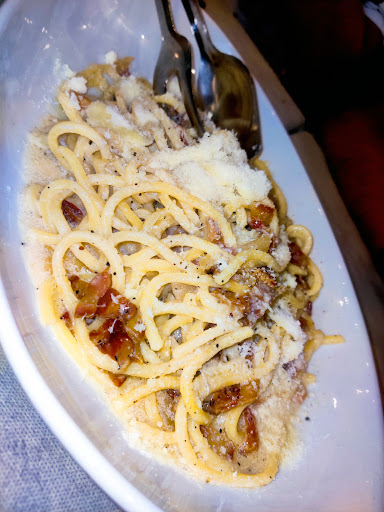 Primi di una delusione tremenda: -Carbonara sciapa, guanciale quasi non pervenuto, poco o nulla saporita, uovo troppo cotto e rigatoni scotti. Gricia anche peggio, formaggio poco saporito, guanciale praticamente lesso e per nulla rosolato, troccolo cotto al punto giusto ma che nell'insieme consegnavano un piatto "sciacquato" e per nulla paragonabile ad un primo da ristorante.