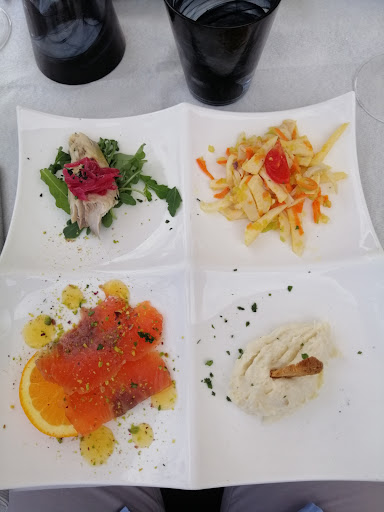 Read moreSul lungomare, location piacevole anche d'inverno con la luna che si specchia sul mare distante pochi metri. Servizio puntuale, preciso e cordiale. In coppia abbiamo preso gli antipasti della casa (un poker di antipasti freddi gustosissimi e due antipasti caldi come il soute' di cozze e degli ottimi scampi al rosmarino). Due primi: ottima la calamarata e piacevole la specialità dello chef ovvero la carbonara di mare, cremosa dove però, almeno x i miei gusti, il formaggio ha avuto un ruolo da protagonista rispetto al pesce. Le alici scottadito sono da provare così come i gamberi flambe (se siete in una serata romantica soprattutto) dalla presentazione scenografica, ma altrettanto ottimi. Unica nota stonata (almeno x quanto mi riguarda) la presenza dell'intestino nelle mazzancolle, uno degli antipasti freddi. Porzioni corrette. La carta dei vini offre i bianchi del Piceno (ma non solo) come Passerina e Pecorino delle cantine della provincia, un rosé un paio di rossi e naturalmente bianchi con bollicine.. prosecco e non. Scelta più che sufficiente anche se avrei gradito qualche eccellenza di un paio di cantine picene (ad esempio Centanni) che hanno dei bianchi riconosciuti e premiati anche a livello internazionale e sicuramente all'altezza dei piatti dello chef Mauro. Il conto non è da trattoria, ma non potrebbe esserlo ed è sicuramente in linea con la qualità dei piatti, il servizio discreto, ma puntuale e una location essenziale, pulita ed ordinata. Alla fine dividendo antipasti della casa e secondo con un primo cadauno e un calice di vino si può stare anche sui 50 euro a testa avendo soddisfatto palato e stomaco. Torneremo x provare gli...