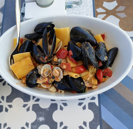 Read moreUltimo pranzo delle vacanze in questo ristorantino molto carino a cavallo tra la spiaggia e il lungomare. Che dire...una chiusura decisamente degna. Insalata di mare molto buona, così come lo scoglio, ma la vera sorpresa è stata l'amatriciana con le cozze: una bomba. Spiedini pure molto buoni, conto...