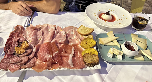 Read moreSiamo stati in questa Osteria dopo aver fatto un beve giro nella parte alta del borgo da dove puoi godere di una meravigliosa vista sia al tramonto che a notte fonda salendo sul Castello che purtroppo è in ristrutturazione. Le foto sotto gli ormai " famosi archi " godono di poca luce per cui farle è stato inutile a meno che non si dispone di una buona illuminazione e quindi recarsi sul posto con dei faretti oppure in un momento ben preciso del giorno che non ho avuto tempo di stabilire. La cena è andata bene, ottimo il tagliere di salumi e il pane che ci è stato chiesto se ne avessimo bisogno ancora e quindi rifornito. Il vino da noi scelto un Syrah non ci è piaciuto molto risultando molto pastoso e per nulla indicato per la tipologia di cena. Magari dietro un consiglio avremmo optato per un Piceno rosso, ma ai posteri lauta recensioni perché non siamo molto avvezzi nello scegliere i vini e quindi ci basiamo su quello che c'è scritto sulle varie etichette/menù. Come primo abbiamo scelto i maccheroncini di Campofilone al tonno, polpette di melanzane e ceci e spezzatino di maiale. Le quantità erano abbondanti 110g il primo e 90g il secondo, ma sul menù è indicato che a richiesta i clienti sarebbero stati volentieri accontentati su ulteriori quantità. In generale la cucina è una home made tipica delle Osteria con prezzi che sono molto in linea con altri ristoratori lasciando poco spazio al nome Osteria dove ti aspetteresti prezzi più abbordabili. Il posto è carino per passare una serata "diversa" ma nulla di entusiasmante anche perché la piazza è leggermente a dislivello e il nostro tavolo era leggermente in pendenza. Il tutto però è stato ricompensato dalla disponibilità, gentilezza e cortesia dell'Oste che nel primo casa con un semplice lecca lecca ha calmato i bollenti spiriti di nostra figlia e successivamente invitando alcuni commensali vicini di non fumare al tavolo ma...