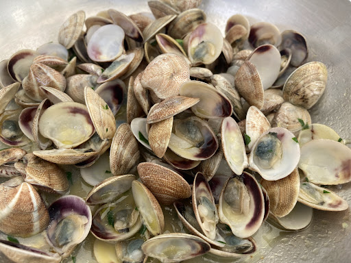 Der rohe Tunfisch (Antipasto) mit Kapernäpfeln hat uns durch Frische und Geschmack überzeugt, nur auf die roten Zwiebeln könnte man verzichten (persönlicher Geschmack). Sehr empfehlenswert auch die Insalata di Mare und die Vongole. Sehr gute Primi (Gnocchi, Chitarrine...), bester Guazetto im gesamten Urlaub, sehr gute Spiedini mit Calamari. Das Tagesdessert (Tiramisu) war geschmacklich in Ordnung, wenn auch ein bißchen zu fest geraten. Auch der Cafe Marinaio schmeckt uns hier besonders gut.