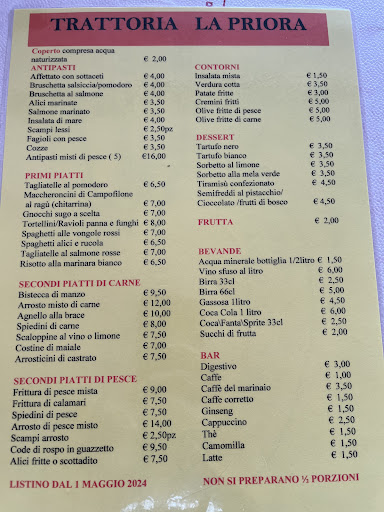 Read moreDa premettere che andiamo in questa trattoria da almeno 1 decennio. I miei suoceri da 2. Antipasti buoni e porzioni giuste. Ordiniamo le tagliatelle ALICI E RUCOLA. In pratica le alici erano rimaste in spiaggia a prendere il sole!Erano tagliatelle all' acqua di cottura!! Si sentiva l' uovo della pasta all' uovo. Ho detto tutto. E pensare che appena l'estate scorsa avevamo provato questo piatto ed era pieno zeppo di alici. Stavolta c'era qualche codetta nel fondo del vassoio ma secondo me erano alici sotto sale. Un piatto indecente. Lo dico col cuore sperando che possa essere per loro motivo di crescita. Avevamo portato una torta per festeggiare il compleanno di mia suocera.. la torta era distrutta sopra...e loro hanno voluto farci credere che fosse stata una frenata durante il viaggio. Ovviamente non c'è stata nessuna frenata che avrebbe potuto rovinare la torta sopra. Mezza scritta non c'era più! Mia suocera è stata la prima a rendersi conto che era una bugia 😅😅! Avremmo dovuto ribaltarci con l'auto per farla rovinare in quel modo. Essere stati trattati da idioti non ci è piaciuto. La torta è arrivata integra ed è successo qualcosa nel ristorante che non sapremo mai!!Avremmo preferito la verità. Invece hanno dato la colpa "a noi". Una pessima pessima figura!!Mia suocera, GRAN SIGNORA, ha anche lasciato una piccola mancia!...