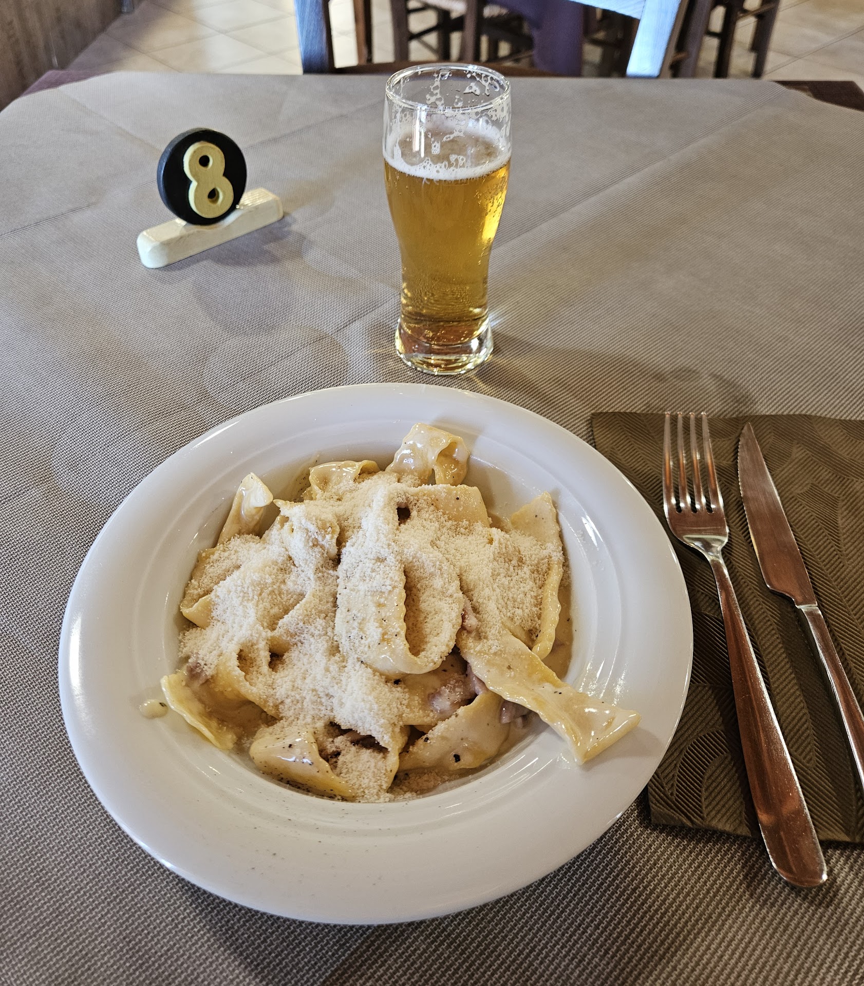 La prima cosa che ti colpisce è la location: immerso in un bosco, questo ristorante ti fa sentire subito in pace. L'ambiente è caldo e genuino, e i tavoli tondi nello spazio antistante invitano alla convivialità, a chiacchierare e a condividere. Non è la formalità forzata dei locali "di lusso", ma una professionalità sincera e un'accoglienza che ti fa sentire a casa fin dal primo istante. Il titolare e lo staff si prendono cura di te con una discrezione e una passione che si percepiscono in ogni gesto.