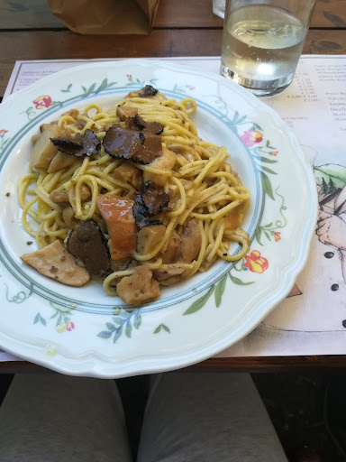 Siamo arrivati alle 15.00 quando il ristorante era ancora pieno di commensali, nonostante questo ci hanno dato un tavolo alle pendici del bosco, che era a dir poco suggestivo, e ci hanno serviti in neanche 15 minuti (tra commessa e servizio degli antipasti).