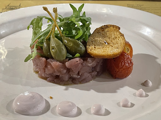 Read moreUn buon ristorante, carino ed accogliente, inserito all'interno dell'omonimo residence situato a metà strada tra Montescudaio e la frazione del Fiorino. Ampio spazio all'aperto ma coperto. Menù sia di carne che di pesce, con proposte molto curate sia nella combinazione dei componenti che nella presentazione dei piatti. Prezzi medio-alti ma in linea con la qualità offerta. Abbiamo provato una "Tartare di tonno con pomodorini, maionese di polpo, fiori di cappero e cialda di pane croccante" (13€), una "Insalata di mare calda con calamari, polpo e cozze servita con panzanella croccante e maionese di polpo" (12€) ed una "Grigliata di mare con calamari, gamberoni e filetto di orata servita con maionese di polpo e insalatina" (16€). Tutto piacevole ed abbondante. Personale cortese e...