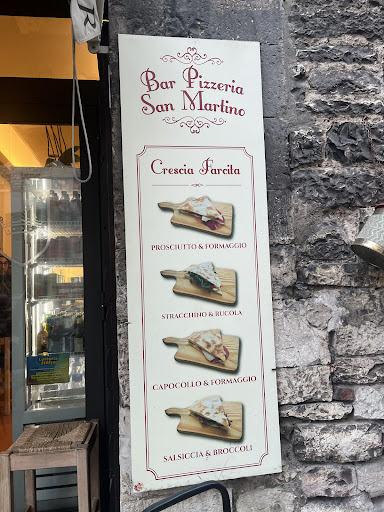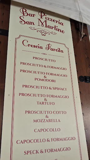 Read moreA Gubbio non potevo non provare la Crescia Farcita ho chiesto in giro e mi hanno consigliato quelli del posto di andare al bar Pizzeria San Martino. Trovata in una piazzetta con veranda strapiena di gente.Le premesse sono buone di entra il locale è un bar tabacchi Pizzeria veranda esterna bella il locale all’interno meno.Ordinato al tavolo una versione semplice con prosciutto e formaggio.Particolare l’impasto una via di mezzo fra piada e pizza,ma gradevole da provare la versione salsiccia e marmellata di cipolle vista passa ottimo effetto ottico.Conto basso come da...