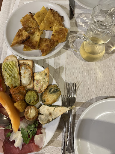 Read moreRistorante tradizionale dal rapporto qualità prezzo eccezionale. Siamo stati a cena in 6 adulti e mangiato cibi tradizionali preparati con cura e senza fronzoli ma tanta sostanza. Antipasti eccezionali: presi due piatti diversi da condividere e mi sono piaciuti molto (salumi, formaggi, crostoni con diverse guarnizioni, frittini, etc). Dopo gli antipasti alcuni commensali erano già sazi! Di primo abbiamo preso 2 porzioni di cappelletti fatti in cass con tartufo, ottimi come qualità e quantità (abbondante tartufo nero). Secondi: grigliata mista (modificata con solo agnello e vitello), faraona in tegame, agnello al forno, bistecca di vitello. 3 o 4 contorni. Dolcetti vari per 4 persone, 3 calici di vino e qualche bottiglia di acqua. Speso meno di 200 euro!! Servizio veloce e super cordiale, è un piacere essere serviti così, non è affatto scontato in zone turistiche. Se mi capiterà di ripassare a Gubbio, farò senz'altro un'altra sosta qui. Bravi, continuate così, facendo assaporare i gusti tradizionali della vostra cucina al giusto prezzo. Dimenticavo, ambiente rustico pulito ed ampio,...