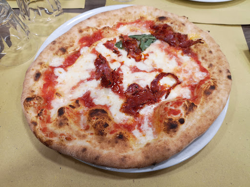 Read moreAbbiamo mangiato la pizza e preso un antipasto. Tutto molto molto buono! L'antipasto, da noi scelto, era semplice e composto da prosciutto crudo e bufala (mozzarella eccezionale, molto buona e fresca); inoltre al posto del pane ci siamo fatti portare la schiacciata, anche questa molto buona. La pizza ha solo i bordi alti mentre la base è fina fina: molto buona e condita. Inoltre si ha la possibilità di riempire il bordo con ricotta o mozzarella. Io l'ho presa con il bordo ripieno di ricotta, molto buona, ma non sono riuscita a finarla perché comunque riempie. Consiglio quindi di prendere solo la pizza se non siete dei gran mangioni! Inoltre l'impasto è fatto bene in quanto non rimane la pesantezza sullo stomaco dopo aver mangiato. La location è carina e giovanile e riprende il tema del film "Il Postino". Il bagno è nuovo e pulito; infatti la pulizia in generale non manca. Il personale è cortese e gentile. Torneremo...