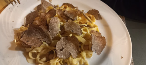 Read moreLocalino posto in una piccola stradina limitrofa ad una principale di accesso al centro, caratterizzato da un' artefatta atmosfera medioevale. La cantina presenta la possibilità di mangiare lungo il vicolo, lungo il corridoio di accesso (sempre esterno) a all'interno. Menù abbondante con piatti abbastanza tipici della zona a prezzi medi. Molto interessanti i menu fissi (almeno tre mi pare) a prezzi sicuramente interessanti e per i quali ho optato (menù cacciatore). L'antipasto, ricco di salumi + o - tipici accompagnati con una focaccia, che ha uno specifico nome che non non ricordo, ma tutto molto buono. Il primo prevedeva tagliatelle coniglio e tartufo, che quantità a parte (abbondanti) mi hanno lasciato abbastanza indifferente (un po anonime, ma delicate). Il secondo cinghiale in umido con patate. Questo piatto mi ha un po scontentato devo essere sincero, non mi è piaciuto il cinghiale (duro e tritato molto finemente anche se saporito) e le patate idem (bruciacchiate ed insipide). Come dolce una soddisfacente quantità di pecorino con miele (idea originale e qualitativamente discreto). Tirando le somme, rapporto qualità prezzo (per il menù ripeto) molto competitivo, se avessi preso i soliti piatti singolarmente sarei rimasto francamente un po deluso dalla qualità sul prezzo. Devo dire che sono arrivato anche molto tardi (a pranzo) e comunque mi hanno servito con calma e...