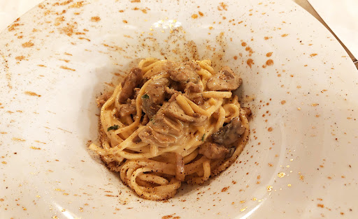 Read more17/01/2020, GIUDIZIO SINTETICO: OTTIMO!!!! Recensione estesa per chi ha tempo e voglia di leggere e perché nel leggere quelle degli altri noto un po' troppa discrepanza . Preciso che non sono solito scrivere recensioni e che il mio giudizio è supportato da una giovanile esperienza nel ramo della ristorazione e dall'abitudine di visitare circa una settantina di ristoranti diversi all'anno. Mia moglie ed io siamo capitati qui per caso a pranzo il 17 gennaio, un venerdì, non avevamo letto le altre recensioni e ci siamo fatti fortunatamente attirare dall'ingresso sul giardino. Il primo impatto con il locale è stato subito positivo, abbiamo avuto entrambi l'impressione di essere capitati nel posto giusto: il ristorante è ospitato al piano terra di uno splendido palazzo storico e nobiliare, ha un arredamento di pregio e ben curato, risulta accogliente e intimo grazie ai tavoli disposti in maniera ottimale, le sedie sono comodissime. Ci accoglie un cameriere veramente molto cortese e discreto che manterrà questo gradito atteggiamento anche dopo la nostra scelta dal menù e per tutto il tempo del pranzo che abbiamo potuto consumare con tutta calma. Abbiamo scelto un menù "low cost" che per 20 euro a persona offriva una scelta tra tre primi diversi, una tra tre secondi diversi e il dolce, caffè e amari ci sono stati offerti dopo dal proprietario che sa intrattenere piacevolmente i clienti con la storia dello stabile. I primi scelti sono stati buonissimi e abbondanti: gli gnocchi avevano una consistenza soda a mio gusto perfetta e il ragù di cinghiale che li accompagnava è stato il più gustoso e saporito apprezzato nell'ultimo anno (il cinghiale è stato finalmente cinghiale), le tagliatelle cacio e tartufo ben equilibrate nell'espressione di questi due importanti sapori. I secondi esattamente come i primi: il maiale brasato su letto di funghi morbido e giustamente saporito, la tagliata di petto di pollo cotta a bassa temperatura tenera e delicata. Dolci fantasiosi. Vino della casa sfuso giustissimo. L'atmosfera per noi, ma anche per gli altri clienti presenti, è stata intima e riservata ma allo stesso tempo familiare e accogliente grazie al personale: il cameriere è giovane, educato, gentile, presente ma mai invadente, il cuoco altrettanto giovane e, parlandoci, si ha la conferma di ciò che esprimono i suoi piatti; voglia di soddisfare il cliente rispettando la tradizione e impreziosendola con inventiva e carattere. Questo è quello che è successo a noi; in sintesi in assoluto il miglior menù "low cost" provato su e giù e qua e là per l'Italia e un posto in cui ritornare...
