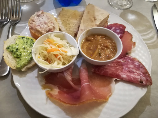 I went for the fixed tourist menu for €20. I presumed there would be a service charge on top, but no, it really was €20. I also presumed that this "cheapy option" would come with small portions, but no, there was so much excellent food I had to tell the waiter not to bring the last dishes as I was full! The €20 includes huge dish of various local appetisers two small starters, one risotto with a truffle sauce, one tagliatelle or similar with a meat sauce a pork fillet, with a mixed salad side half a litre of mineral water a quarter of a litre of wine.