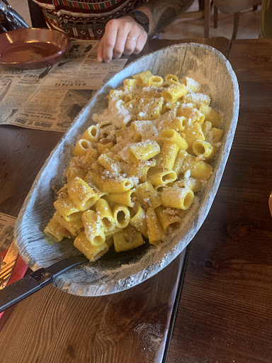 Read moreCena di sabato sera con Amici. Partiamo dall'ospitalità di Susanna e Francesco. Sono in grado di farti sentire a casa tua, con la sola differenza che sei tu quello ad essere coccolato e viziato in ogni scelta. Siamo partiti con un antipasto che stenderebbe chiunque, mozzarella di Bufala, fagioli con cotiche e salsiccia, trippa che aspettava di essere annaffiata con il Pecorino, porchetta straordinaria e verdure grigliate. Come primo piatto abbiamo mangiato non la carbonara, ma "LA CARBONARA". Vi chiederete che differenza c'è. Beh, basta solo assaporare il guanciale prima scelta per andare vicini allo svenimento, immerso in un piatto perfetto. Come secondo piatto abbiamo puntato su ricche cosce di pollo con i peperoni....una serata perfetta, resa ancor più magica dal vino e birre "PARTICOLARI" (per queste ultime non posso fare spoiler, per cui dovete andare di persona per comprendere la loro peculiarità). Ora sono consapevole di due cose, LA PRIMA CHE RITORNERÒ PRESTO,.LA SECONDA CHE TORNERÒ IN TUTA, PERCHÉ QUANDO INIZI A MANGIARE TOP, NON...