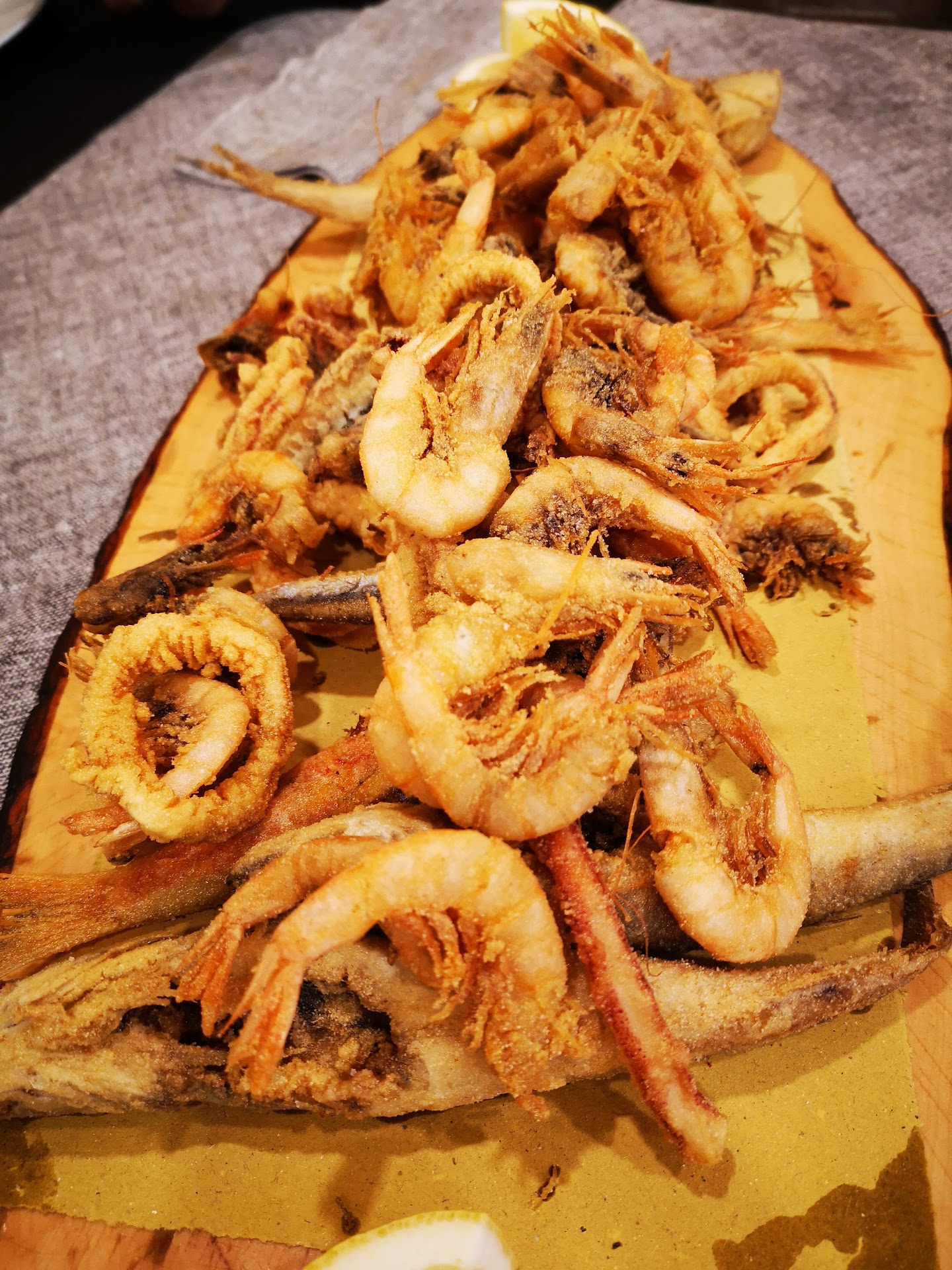 Partiamo dall intipasto di crudi, indubbiamente freschi e buoni ed è qui che finisce l unica nota positiva. Dall antipasto cotto in poi una delusione. Soute di cozze dove le cozze per metà erano vuote. Gnocchi di patate carichi di farina ed estremamente duri, il condimento era sapido al limite della tollerabilità, passerò la giornata a bere acqua. Frittura mista, calamaro assolutamente non fresco Ora passiamo alle porzioni, ci viene chiesto sia per il primo che per il secondo se volevamo un vassoio unico al centro per servirci da soli, ingenuamente accetto, ma ora ho capito perché, le porzioni nel vassoio nn sono assolutamente quelle ordinate, il tavolo vicino a noi composto da due persone aveva le nostre stesse quantità e noi eravamo in 3 Arriviamo al dolce Un tiramisù e una torta panna e nutella che avevamo lo stesso sapore di dolce fatto già da diversi giorni e l unica differenza è che il tiramisù era talmente bagnato nel caffè e latte, si, non nel caffè, ma nel caffè e latte che il pan di Spagna era una poltiglia. Niente, lo mando indietro e la cameriera mi dice che sono l unica che ha avuto da ridire, senza nemmeno preoccuparsi del perché anzi sembrava anche scocciata del fatto che avessi detto che nn era bagnato al caffè ed era inzuppato all inverosimile. Ora leggo le recensioni e capisco che per fortuna c è ancora chi mangia bene e la...