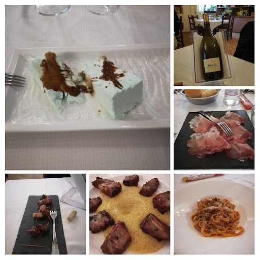 Family day ….andiamo a pranzo con un nutrito gruppo di parenti e la location scelta è questa osteria che non conoscevo, il parcheggio segnalato e ampio è situato difronte all’Osteria .Al nostro ingresso del locale ci accolgono la proprietaria e due camerieri salutandoci e accompagnandoci in esterno sotto un porticato dove praticamente a parte un tavolino di 4 persone lo spazio restante era occupato dalla nostra tavolata ,apparecchiata con semplicità ma resto piacevolmente sorpresa per la discreta distanza tra commensali il che non guasta quando si è in tanti inoltre un condizionatore portatile acceso per rendere la temperatura un po’ più gradevole,buona l’attenzione dimostrata per me intollerante al glutine e alle alternative culinarie proposte . Il menu prestabilito anticipatamente mi ha soddisfatto partendo dagli antipasti,2 primi 2 secondi vino rosso / bianco a fiumi , dolce e caffè ad un prezzo finale di circa 40€ a persona (non male), nulla da eccepire sul personale di sala attento ed efficiente. Nel complesso una esperienza positiva…tornerò...