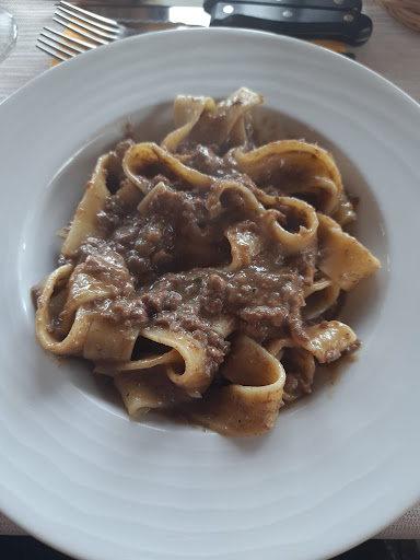 Siamo entrati per pranzare in 7 persone del gruppo di cammino di Paullo. Avevamo prenotato per mangiare a prezzo fisso €11. Quando siamo arrivati, alle ore 12:20, abbiamo trovato tutto occupato ad eccezione del nostro tavolo che ci era stato riservato. Avevamo da scegliere fra 3 primi; tutti abbiamo ordinato risotto con funghi e abbiamo tristemente scoperto che era finito. Sono stati presi alla sprovvista dal fatto che tutti avevano preferito il risotto. A questo punto, a titolo compensativo, il cuoco si è offerto di preparare per tutta la tavolata pappardelle al sugo di cervo. Ha fatto un vero capolavoro... Tanto che lo abbiamo chiamato fuori per complimentarci con lui. Eccellenti anche i secondi di carne... Il vino l'acqua e il caffè sono compresi. Che dire... Bravi. Mangiare da loro è...