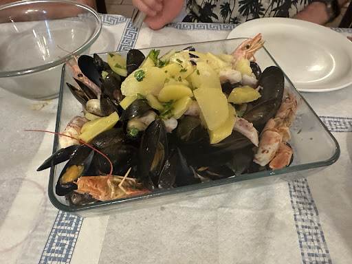 Read moreLuogo non un po vecchio da fuori sembra quasi chiuso per le luci molto soffuse. Eravamo in 5, abbiamo mangiato benissimo, scegliendo idel menù di mare , ma c'è anche un menù ndi terra, cibo ottimo e quantità giganti, diciamo che rapporto agli altri ristoranti ogni porzione è per 3/4 persone, ci siamo scambiati qualcosa, Se siete deboli di stomaco ordinate in 2 una.cosa sola, noi abbiamo preso 2 portate a testa, polpo con patate, spaghetti allo scoglio, alici marinate cozze alla marinara, frittura di pesce per 5 , più patatine 2 caraffe di bianco da mezzo litro una da un altro quarto di bianco, una bottiglia di acqua una coca cola, e un caffè a 140 euro. Abbiamo fatto fatica estrema a mangiare tutto . Gestito da persone cordiali e simpatiche. Se guardate l'ambiente pareti mobilio ecc . non venite, ma piatti posate tavoli e cucina, insomma le cose che contano sono...