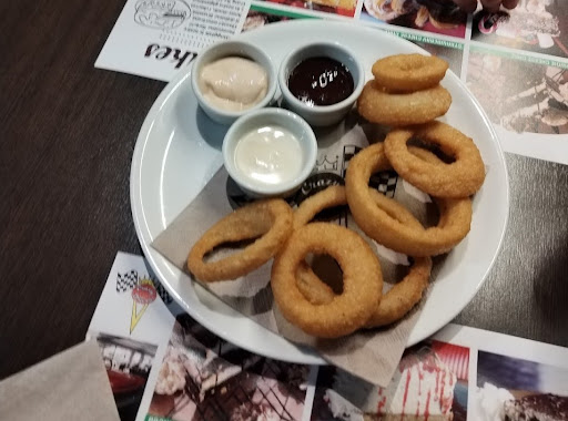Read moreOttimo locale, Location accogliente e molto particolare (sono presenti molti oggetti di stile americano, tipo una chitarra che apparteneva ad Elvis, oltre a poster, luci neon e così via) mi è piaciuta molto questo modo di abbellire il locale. Il servizio è stato ottimo, niente da commentare Il cibo è delizioso, come antipasto abbiamo ordinato delle onion rings e delle patatine fritte con del formaggio, tutto squisito; successivamente abbiamo ordinato dei cheeseburger dei hamburger con il bacon e un filetto di carne. Per completare il pranzo abbiamo ordinato delle cheesecake, un milkshake e dei Churro, davvero molto buono. Il Prezzo è nella norma, soprattutto per tutto quello che abbiamo preso (e anche perché eravamo 6 persone) Consiglio vivamente a chi cerca un locale stile Old Country e che vuole...
