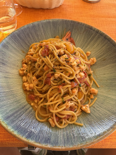 I will memorize this evening for a long time. About myself: Having eaten in already hundreds Italian restaurants in the last 20 years (from Michelin to simple Osterie), this must have been the worst service ever met. Simply choose randomly a restaurant at the port at it will be better. Standard question: Frizzante or naturale? Of course they bring you the more expensive frizzante water instead of the standard Ferrarelle or Lete listed in the menu (water was later removed completely from the bill). My reaction was to directly skip the wine, as a matter of principle. From this point we stayed focused to be not surprised by more serious scams. Secondi arrived, no joke, 10 seconds after taking the plates from the primi that were taken while still eating to increase turn over at every table. We saw it several times. Like being fed on a farm (comment from the restaurant: that is normal, people like to eat fast) Mood was terrible this night across the tables: Seems like nearly every table got at least a wrong dish or a wrong bill. Bill was, of course, wrong. The Fork discount of 30% not taken into account (this can sometimes happen). A dish was set with 30 instead of 20 Euros before the discount in the second try :-D :-D. This seems to be a systemically scam Lead of waiters seems to know all the scams in perfection and was not irritated by any of them. This restaurant clearly underlines in the menu that the coperto does not include any service tip. Are you serious? Which service?