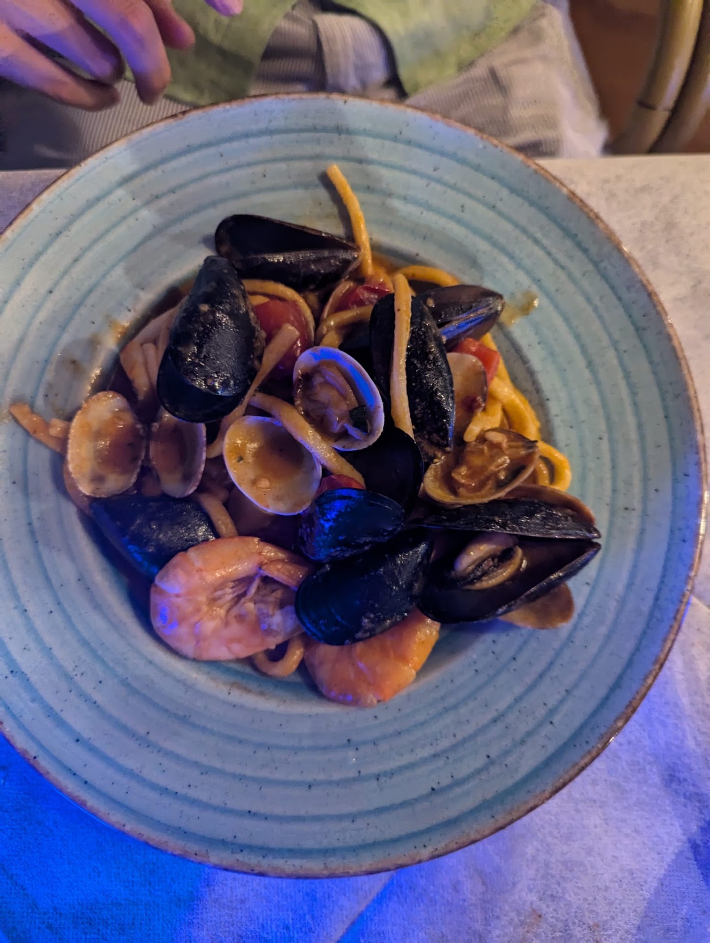 We took the calamari and shrimp which were light like the air, pasta with sea shells which was honestly the best seafood pasta I had in my life, and a tiramisu so yummy that I could have eaten three !