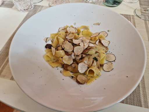Read moreEsperienza piacevole a pranzo. Servizio cortese, gentile ed attento, gli serve solo accelerare un po' i tempi e sono perfetti. I piatti poi ..una vera sorpresa! Fantastico il caciocavallo ai ferri con rucola, funghi e scaglie di tartufo. Ottimo il tagliere (vario ed abbondante per i suoi 10 euro). Il primo poi: "Paccheri con crema di ricotta, con salsiccia, porcini e tartufo" da sognarselo pure di notte! Il conto è più che abbordabile e pure il caffè è buono. Unico appunto: toglierei dal tavolo i calici "baroccati" che impediscono di vedere con chiarezza cosa viene versato (in questo caso un buon Montepulciano), meglio i classici bicchieri lisci e trasparenti adatti al vino da consumare, anche se in questo caso avrei potuto chiedere il cambio e colpevolmente non l'ho fatto. Detto...