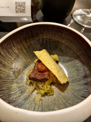 Read moreMi dispiace ma non ritornerei assolutamente. Location carina, ben tenuta e curata ma purtroppo in un ristorante si và per mangiare bene e non ho potuto dire lo stesso per il cibo. Il benvenuto della casa consisteva in una polpettina il cui sapore non era male ma purtroppo vecchia e scaldata molto male, all' esterno era tiepida e all'interno fredda. Insieme alla polpettina ci è stato portato un piattino con 2 fettine di pane,2 di focaccia e 2 grissini... Tutto, tranne i grissini, estremamente vecchi. Come antipasto abbiamo preso un carpaccio di manzo con maionese e capperi, all'arrivo nel piatto c'erano anche i pomodorini confit che coprivano ogni sapore ma nel complesso accettabile, l'altro antipasto era il polpo laccato che a me è piaciuto ma avrei preferito meno soia in quanto avendo un sapore forte e sipido andava a sbilanciare la delicatezza del paitto. I primi invece sono stati uno gnocchetto con zucca,polpo e nduja ed un tonnarello con salsa Alfredo e glassa di marchigiana.. sul primo ci siamo, sul secondo ho richiesto del pepe perché era una bellissima cacio e pepe senza pepe, la glassa non aveva alcun sapore ma si sentiva esclusivamente il formaggio. I secondi sono la nota più dolente: -petto d'anatra con una salsa agrodolce che dopo un po' disgusta -filetto di scottona...... Ecco qui ho detto "non ci stiamo minimamente". La carne era dura, richiesta la cottura al sangue mi è arrivata una cottura Blue con l'esterno, non si masticava facilmente.. ho tenuto il boccone per minuti in bocca facendolo passare da una guancia all'altra. Cosa peggiore è stato il centro della carne completamente freddo. La cottura al sangue non vuole dire che dentro la carne deve avere temperatura di frigo, vuole dire che al centro la carne deve essere sui 45° circa. Ovviamente carne completamente rimasta nel piatto. La cosa che meno mi è piaciuta è stato dover anche pagare quella carne non mangiabile. Totale di 150€ in 2 con una bottiglia di vino di 30€. .... Non ci tornerei e non lo...