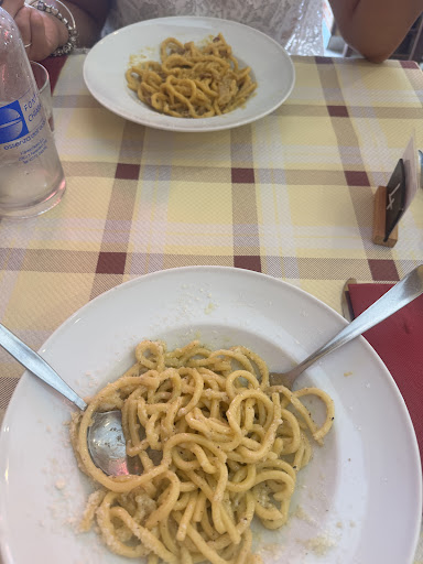 Read moreDa evitare come la peste. Prenotiamo da Roma per 7 coperti. Arriviamo e ci obbligano a prendere un menù a 30 euro, proponendo un antipasto, tre primi ed un secondo. Dopo aver detto che uno dei componenti non mangiava carne e tre primi erano davvero troppo..ci accordiamo per 25 euro a testa, con antipasto, due primi ed i secondi. Arriva al tavolo un piatto con 5 bruschette e della ricotta..peccato che noi eravamo in 7!ed un tagliere di salami e formaggio. Unica nota positiva del pasto. Poi, dopo più di 40 minuti arriva il primo, una padellona di tonnarelli ai funghi porcini che divideva di tavolo in tavolo.. Niente di che. Dopo altri 40 minuti, arriva lo "chef" con una padella di tonnarelli cacio e pepe, ma siccome la cameriera non aveva rimesso i piatti al nostro tavolo, vediamo gli stessi riempire i piatti dei tavoli accanto. A noi, un'avanzo della padella! Da dividere in 7!! Alle nostre rimostranze, lo "chef" persona alquanto ignorante, nei modi di porsi, ci dice che se avessimo preso il menù da 30, avremmo mangiato! Caro chef, questo tuo modo di fare lo accetto a Roma, ma se vado da Cencio alla Parolaccia. NON se vengo...