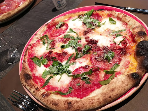 Avevo aspettative diverse, soprattutto nel lievitato, dopo le tante note positive che mi erano giunte per la teglia d'asporto. Nulla di che: profumo di farina, assenza di alveoli che prediligo e scarsa croccantezza, ma è una questione di preferenze personali. A onor del vero, il pezzo di cornicione che tengo alla fine, non era gommoso, quindi bella lievitazione. Farcitura buona, locale molto curato e diverso dalla pizzeria tradizionale. La coltura idroponica alla parete la dice lunga sui costi di ristrutturazione e gestione. Ecco, con una ricercatezza così rimarcata nelle farciture, mi aspettavo una disponibilità birraria decisamente maggiore, per un abbinamento ancora più mirato o forse mi è sfuggito dal listino. Anche questo è un parere personale. I costi sono leggermente...