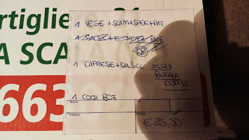 Read moreEra diverso tempo che non prendevo una pizza ieri sera l’ho fatto per me e mia moglie. Quella di mia moglie sembrava fosse stata tagliata a metà, mezzo cerchio,gli ingredienti buttati in qualche maniera con zone con solo pasta e altre con la farcitira ammassata,pessima.La mia quasi rotonda anche qui farcitura buttata senza un minimo d’ordine e in più qualità degli ingredienti di qualità che più scarsa non esiste.Le pizze di qualche anno fa solo un lontano...