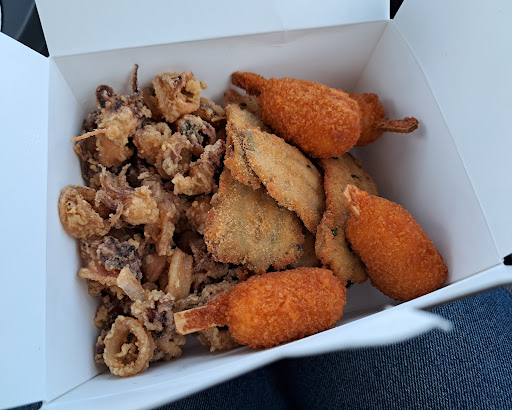 Read moreDELUSIONE Sono stata sabato sera a prendere del fritto di pesce con il mio ragazzo, incoraggiati dalle buone recensioni lette. Erano le 20.30 circa. Non c'erano altri clienti oltre noi in quel momento. Abbiamo preso una paranza e una box con un misto di altre cose. Il fritto era stato fatto sicuramente al mattino, come minimo, ed ormai era fiappo. La paranza era stopposa, gli unici a gradirla sono stati i gattini randagi lì vicino al porto. Sinceramente speravo friggessero il pesce sul momento, a maggior ragione che non c'era la coda di gente ad attendere. Forse in altri orari ci sarebbe andata meglio. Peccato perché il personale era gentile ed il posto in riva al porto permette erano cose positive. Comunque ci siamo rimasti...
