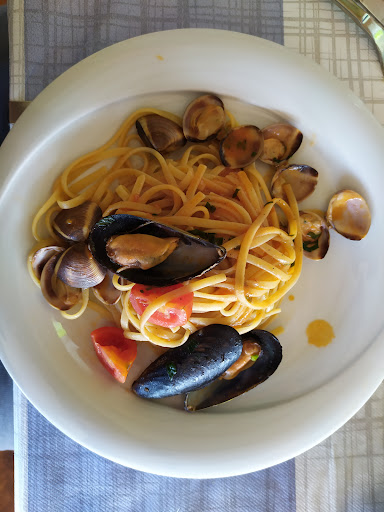 Read moreVista mozzafiato, la terrazza panoramica con vista sul castello permette di godere a pieno del meraviglioso paesaggio notturno purtroppo però non si può esprimere un parere positivo sulla qualità del cibo..... pizza frutti di mare con 4 cozze, 4 vongole e qualche gamberetto sicuramente proveniente dai misti x risotti congelati, spaghetto alle vongole che aveva solo il sapore di olio annaquato e non di mare, il peggio è stata la frittura di calamari pagata euro 17 che risultava flaccida, scura, in realtà erano totani scongelati e non calamari veraci.... impressione avuta è di una frittura già pronta riscaldata al momento! Abbiamo in 4 scelto il menù alla carta evitando il menu turistico proprio xche' volevamo evitare la possibilità di mangiare male pensando che potessimo avere cose preparate al momento ma non è stato così! Abbiamo speso 105 euro ma non è valsa la pena non ci ritornerei e non lo consiglio. Il ristorante gode di una posizione di privilegio ma la gestione, il servizio e la cucina non sono appropriati a...