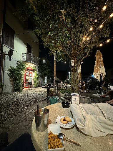 Non voglio assolutamente inferire però: ci siamo fermati a ispra perché sulla strada per il ritorno verso casa (Luino) la nostra bimba aveva sete e decidiamo di fermarci qui: ci accomodiamo a uno dei tavolini esterni e dopo circa 10 minuti arriva una ragazza molto gentile che ci chiede cosa volessimo. Ordiniamo due toniche e un succo per la bimba. Dopo circa ulteriori 25 minuti torna la ragazza con le consumazioni e un piatto di cibo di accompagnamento (da noi peraltro non ordinato e comprendente piatti a base di carne che non mangiamo), faccio presente che noi non mangiamo carne e la ragazza solo a quel punto precisa che data l’ora (18 passate di cui 35 minuti di attesa) avrebbe potuto cambiarcelo con un piatto vegeteriano perché a quell’ora (presumo dopo le 18) per loro è orario è quello dell’aperitivo e quindi tutte le bevande (bibite e succchi compresi hanno il costo da loro praticato per gli aperitivi). Ci si chiede perché non lo abbia precisato al momento dell’ordinazione (avremmo cambiato locale) ma solo al momento di portare le bibite ordinate. Povera Italia abbiamo forse sforato nell’ora dell’aperitivo per la salomonica attesa prima dell’arrivo della cameriera e poi delle consumazioni ma se un soggetto vuole limitarsi (anche durante orario aperitivo) a bere qualcosa (solo perché ha sete) deve vedersi applicato il sovrapprezzo del cibo di accompagnamento (peraltro da noi non voluto - se uno non ha fame non può essere costretto a mangiare o no?). Spiace soprattutto perché era un locale da noi frequentato circa 10 anni orsono (sempre con la stessa proprietà) ma non ricordo una simile strategia commerciale (a mio modo di vedere davvero poco corretta). Evidentemente la crisi pandemica ha indotto a trovare simili stratagemmi....