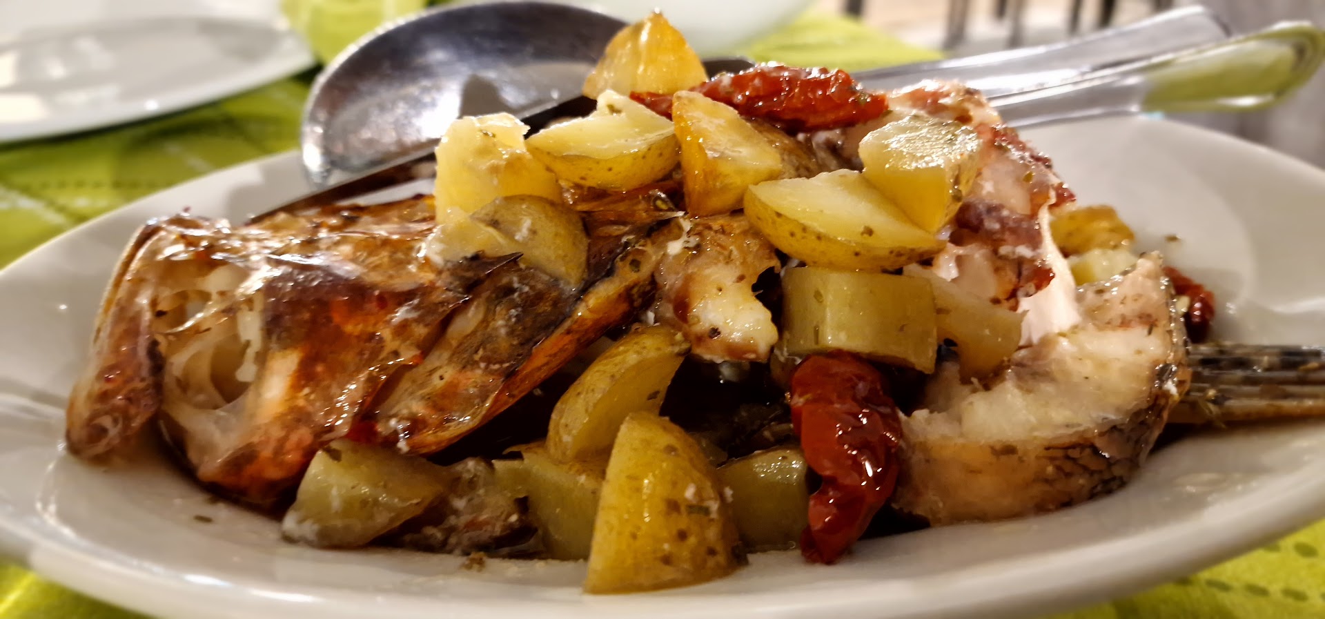 Moving on to the second course, we encountered a dish that was predominantly bones and a solitary fish head. While the meal did include wine, water, coffee, and dessert for a reasonable 40 Euros per person, I couldn't help but feel that the value proposition was a bit off-kilter.