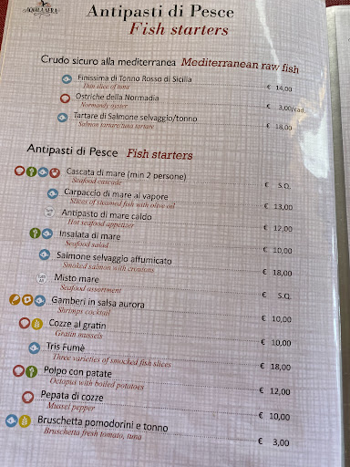 Il menù conta su una vasta scelta, sia in fatto di piatti di mare che di terra. C'è davvero di tutto, anche la pizza in stile napoletano (vista servita al tavolo vicino e di ottimo aspetto), e c'è anche un buffet molto fornito, visibile entrando, anche se non mi ha dato l'impressione d'essere particolarmente accattivante.