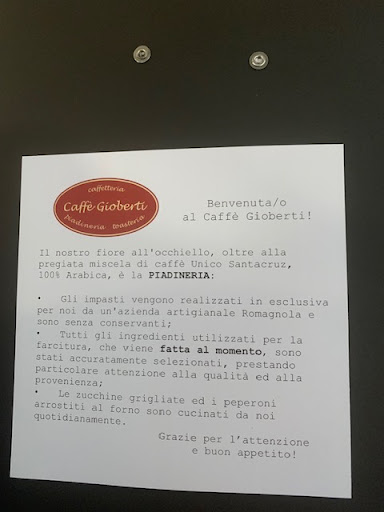 Read moreRaramente capita che io dessi 5 stelle a un ristorante o una piadineria o semplicemente a una caffetteria... Questa volta metterò 5 stelle ma con una stella in meno per il cibo perché secondo l'esperienza limitata che ho fatto in questo caffè e ordinando una piadina nella quale c'era una cipolla caramellata, ho sentito un gusto troppo dolciastro che mi ha un po' disturbato..ma ciò che mi ha positivamente colpito è che quando lo fatto notare alla titolare, lei ha accettato il consiglio e ha capito il dosaggio e spero che ha capito anche cosa da correggere... Le piadine sono buone, la materia prima è ottima, lo è ancora il caffè e le bibite.. Dovrei anche dire che i titolari sono accoglienti e ti fanno sentire che sei a casa...molto amichevoli... Per questo che ho dato 5.. perché noto che è un locale che sta cercando di migliorare e che continua a evolvere in amicizia e affari .. Ho dimenticato di menzionare che questo locale, questo piccolo museo del caffè continua a essere un vero circolo ovvero tempio della cultura di ogni genere .. una cosa interessante....lo suggerisco a chi...