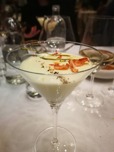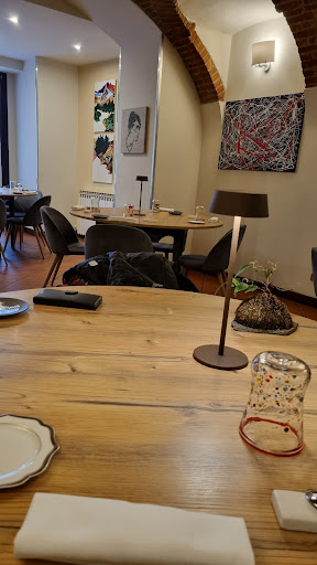 Read moreIch feiere mit meiner Liebsten meinen 60 er mit einer Rundreise durch den Piemont. Leider war dieses Lokal unter den „hochwertigen“ das enttäuschendste. Der Zugang ist ziemlich grindig und spooky. Das Ambiente ist nichtssagend und in keinster Weise bemerkenswert. Der Empfang war eigentlich keiner. Der Kellner war desinteressiert, ruppig und wirkte überfordert. Zum Essen: wir hatten das Menü „Water“ also Fisch. Der Gruß der Küche war ein Espumaschaum aus einer Bitterlimonade auf Erdnusscreme Der erste Gang war Oktopusstreifen auf Granatapfeleis mit Minze und Zwiebel. Durchaus interessant und kreativ. Der zweite Gang waren Tagliatelle mit Oktopusscheiben in Verjus-Sauce garniert mit zwei Bissen rohen und sehr köstlichen Fisches. Leider haben die Nudel sehr nach Barilla geschmeckt. Auch schienen sie bereits laaaange irgendwo auf die Sauce gewartet zu haben. Leider ein für Italien nicht besonders gelungenes Nudelgericht. Der Hauptgang war eine Schnitte Fisch auf heißen Stein gebraten und wurde auch auf ebendiesen zum Tisch gebracht. Ansich eine gute Idee aber dann wurde das Fischchen auf einen kleinen 10 x 10 cm großen Tellerchen angerichtet welche beim Essen immer davon rutschte. Dazu kam ein zweites kleines Tellerchen mit ein bisschen Kartoffelpüree welches bereits kalt war und ein zwei cm langes Stück gebratene Frühlingszwiebel. Und leider war der Fisch trocken. Dann gab es noch auf der Rechnung einen Posten den wir nicht bestellt und natürlich auch nicht konsumiert hatten. Rechnung wurde dann ohne ein Wort der Entschuldigung korrigiert. Der Champagner war köstlich aber dafür können...