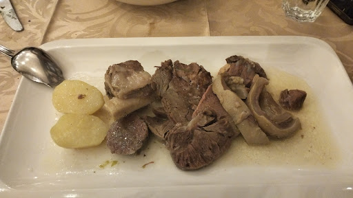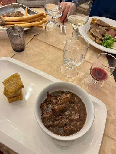 Read moreTrattoria vera e propria, forse di gestione familiare (da l'impressione di posto caloroso). Si trova in una traversa della via principale di Ivrea, in centro. In 4 siamo entrati sabato a pranzo, senza prenotazione (anche se in poco tempo si è riempita tutta); abbiamo ordinato: Carbonade di manzo alla birra, accompagnato da polenta (super consigliato, carne morbidissima che si scioglieva in bocca) Tagliere di salumi e formaggi (consigliato soprattutto per la varietà di salumi) Peperoni in bagna cauda. (Personalmente l'ho trovata con poco aglio, leggermente insipida) Lumachine in salsa. Battuta di fassona. Insalata di radicchio, noci e grana (veramente gustosa) Bollito misto alla piemontese, accompagnato da 3 salse. Servizio nella norma, gentile Conto onesto, sui 140€ (compresi di...