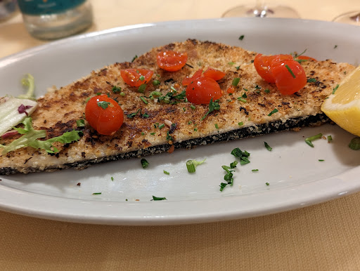 Our waiter was kind, very polite and good at his job. The food was really good, the milanese was the bomb, not dry AT ALL and the seafood starters were fantastic, both the hot and the cold.