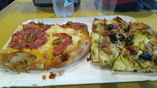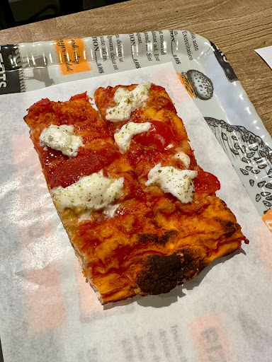La pizza è preparata in stile romano al taglio, con un impasto sottile e croccante. Ho apprezzato la leggerezza della base e la generosità dei condimenti, che risultavano saporiti e ben equilibrati.