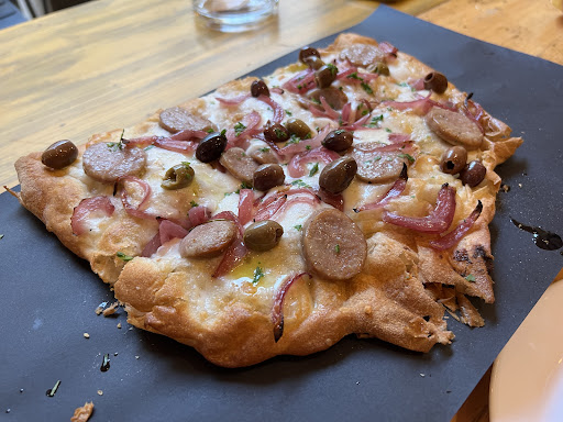 My recommendation when in Jesi, go to la picca! (Important: the seating is under the arch) What to eat and to drink?! Vino ofcourse: on a hot summer day go for the Friolano - it is amazing and a recommendation by our super nice waiter :D I wish I could record the playlist, it is epic :D Also, be like the Italians, come at 20:00 and order an apertivo first - at la picca it’s delicious (see photo) The pizza is like nothing I’ve seen before, flakey almost like a pastry and 100% Italian, we got the salccia to share!...